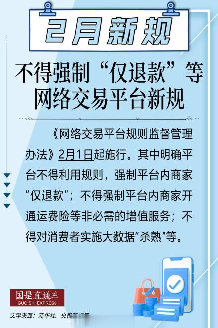 2026年2月起有一批新规开始施行,快看看哪些将影响你我生活!防范整治拒收人民币现金行为、不得强制商家“仅退款”、将“AI主播”纳入直播电商监管范围、中小学生午休“躺睡”的课桌椅有了国家标准……一起来关注!